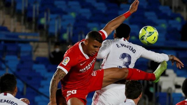双方的首发都有些新意。塞维利亚将两名中锋安-奈西里和吕克·德容双双扔在替补席上,而是使用苏索、奥坎波斯以及帕普·戈麦斯在前场搭档。皇马这边,巴尔韦德重回首发,定位也与国家德比中相似:出现在前场的右路,兼修前场串联与插上射门。